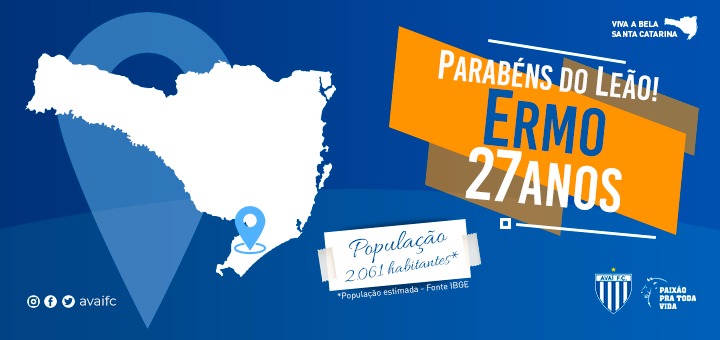 O Avaí Futebol Clube parabeniza o município de Ermo-SC , que está completando neste dia 19 de setembro 27 anos de existência. Esta homenagem, faz parte de um novo ciclo de homenagens do Avaí aos municípios Catarinenses, que teve início no dia 2 de setembro, com homenagem ao município de Blumenau. A partir deste mês […]
