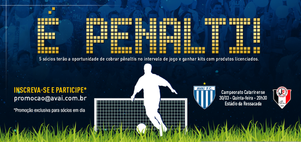Nesta quinta-feira, dia 30, os sócios terão a oportunidade de realizar uma disputa de pênaltis no intervalo do jogo Avaí x Joinville, na Ressacada, pelo Campeonato Catarinense. Serão sorteados (5) cinco sócios para participar da ação. Para concorrer basta o associado estar com sua mensalidade em dia e enviar um e-mail para promocao@avai.com.br com os seguintes […]