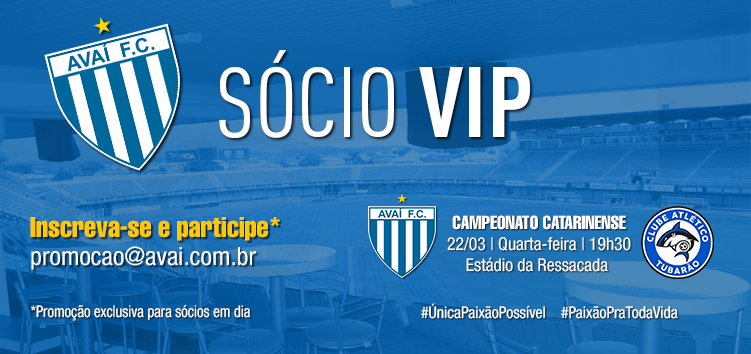 No jogo diante do Tubarão, na próxima quarta-feira, dia 22, pelo Campeonato Catarinense, 05 (cinco) sócios terão a oportunidade de assistir ao jogo na Área VIP da Ressacada com direito a um acompanhante. Para concorrer basta o associado estar com sua mensalidade em dia e enviar um e-mail de inscrição para promocao@avai.com.br com: Nome: Setor: Telefone: […]