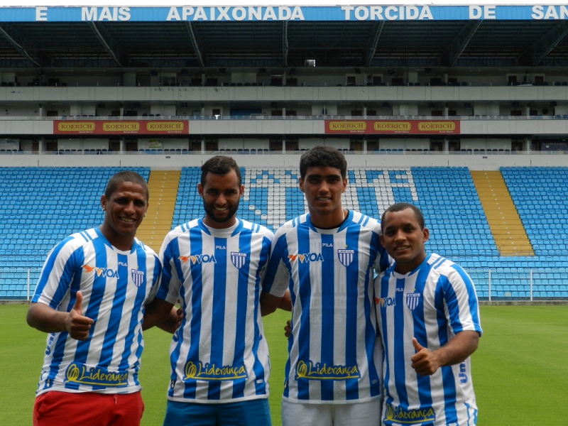 Imagens da apresentação dos novos reforços para a temporada 2015, ocorrida na tarde desta quarta-feira, dia 14 de janeiro, no auditório da Ressacada. São eles: Pablo, Edinho, Denner e Uelliton. Fotos: André Palma Ribeiro/Avaí F.C.