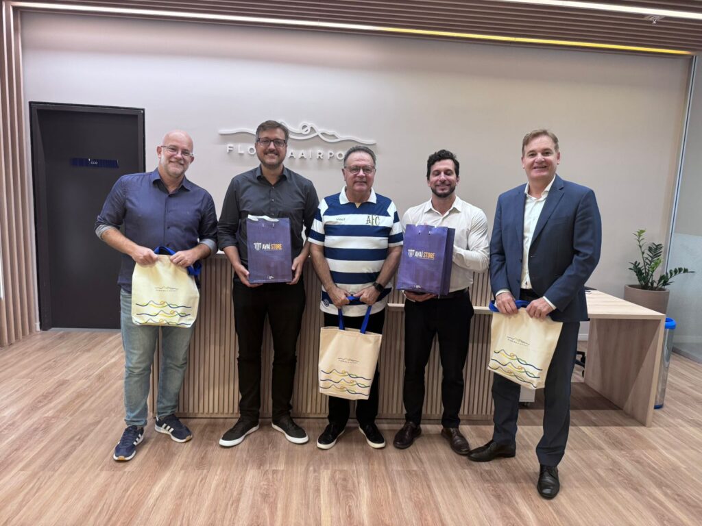 Vice-presidente do Avaí Futebol Clube, Carlos Schmidt esteve no Floripa Airport e conversou com o diretor comercial, Danilo Sesiki, e o head de desenvolvimento de negócios, Fernando Augusto de Castro, sobre a possibilidade de parcerias entre o Leão e o aeroporto, eleito pela sexta vez consecutiva como o melhor do país em premiação promovida pela Secretaria Nacional de Aviação Civil (SAC).