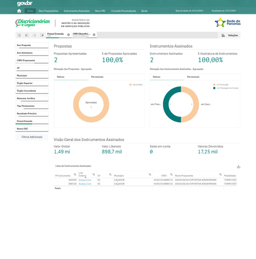 Nesta quarta-feira (17/12), foi publicada no Diário Oficial da União uma emenda parlamentar de incentivo ao futebol feminino destinada ao Avaí Kindermann. A emenda foi de autoria do senador Espiridião Amin e representa um avanço importante para o desenvolvimento da modalidade no futuro.