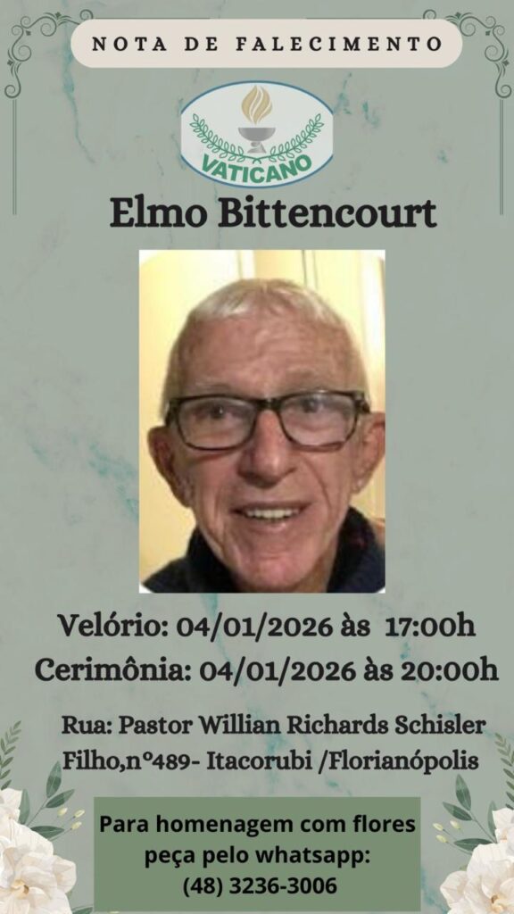 É com pesar que o Avaí Futebol Clube recebe a notícia do falecimento de Elmo Bittencourt, torcedor do Avaí, ocorrido neste domingo (04/01), aos 89 anos, tendo nascido em 16 de outubro de 1936.