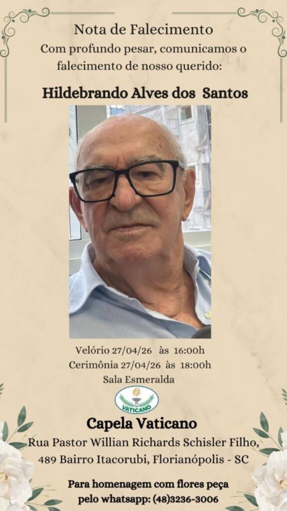 É com pesar que o Avaí Futebol Clube recebe a notícia do falecimento de Hildebrando Alves dos Santos, ocorrido no dia 27 de abril de 2026, aos 93 anos, tendo nascido em 26 de fevereiro de 1933.