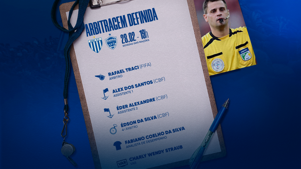 A Federação Catarinense de Futebol divulgou a arbitragem para a partida Avaí x Barra-SC, válida pela 8ª rodada (atrasada) do Campeonato Catarinense Fort Atacadista 2024. A disputa vai acontecer nesta quarta-feira (28), às 19h, no estádio Municipal Eduardo Zeferino Tiago (estádio das Nações), em Balneário Camboriú-SC . Estará no apito o árbitro Rafael Traci-FIFA. Jogo: […]