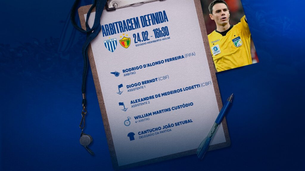 A Federação Catarinense de Futebol divulgou a arbitragem para a partida Avaí x Brusque-SC, válida pela 10ª rodada do Campeonato Catarinense Fort Atacadista 2024. A disputa vai acontecer neste sábado (24), às 16h30, no estádio Heriberto Hülse, em Criciúma-SC. Estará no apito o árbitro Rodrigo D`Alonso Ferreira-FIFA. Jogo: Avaí x BrusqueCompetição: Catarinense Fort Atacadista 2024 […]