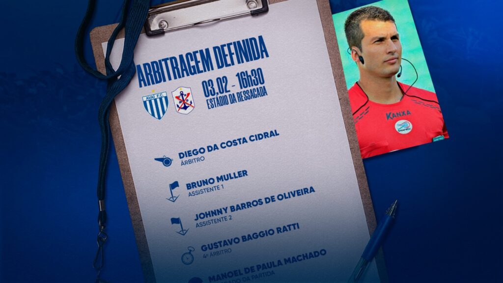 A Federação Catarinense de Futebol divulgou a arbitragem para a partida Avaí x Marcílio Dias-SC, válida pela 5ª rodada do Campeonato Catarinense Fort Atacadista 2024. A disputa vai acontecer neste sábado (03), às 16h30, no estádio Dr. Aderbal Ramos da Silva (Ressacada), em Florianópolis, Santa Catarina. Estará no apito o árbitro Diego da Costa Cidral. […]