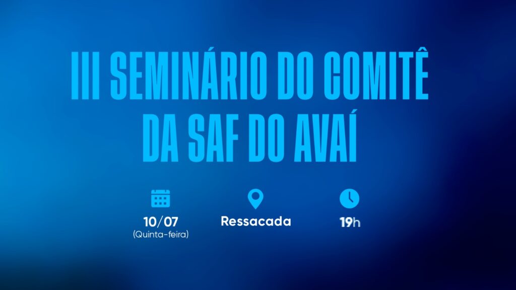 Possibilidade de atração de investimentos, discutida desde 2022, já foi tema de duas comissões, palestras e seminários O Conselho Deliberativo do Avaí Futebol Clube promove no próximo dia 10 (quinta-feira) o III Seminário do Comitê da SAF. Dessa vez não haverá palestras de especialistas, como ocorreu em ocasiões anteriores. Em vez disso, todo o tempo […]